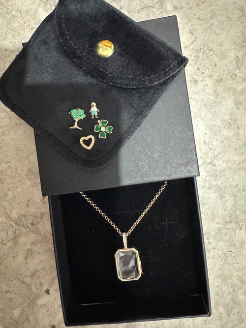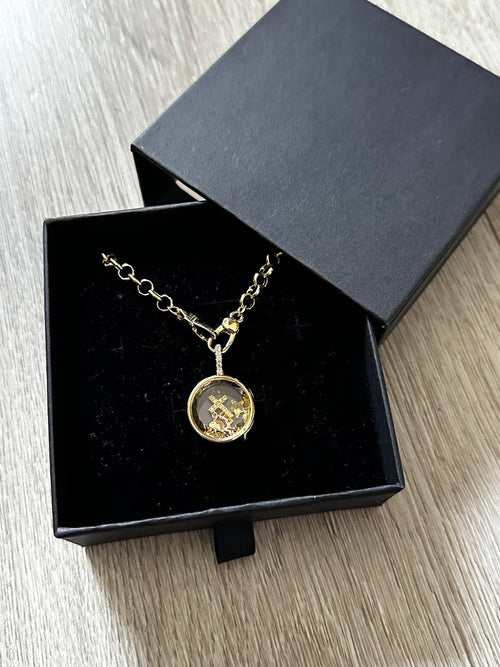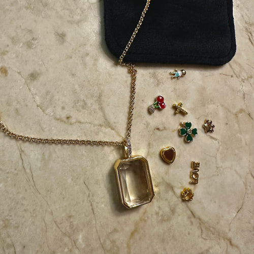 Il suffit d’ouvrir le pendentif sur le côté, de glisser vos charms à l’intérieur, puis de le refermer. Vous pouvez changer ou ajouter vos charms à tout moment.